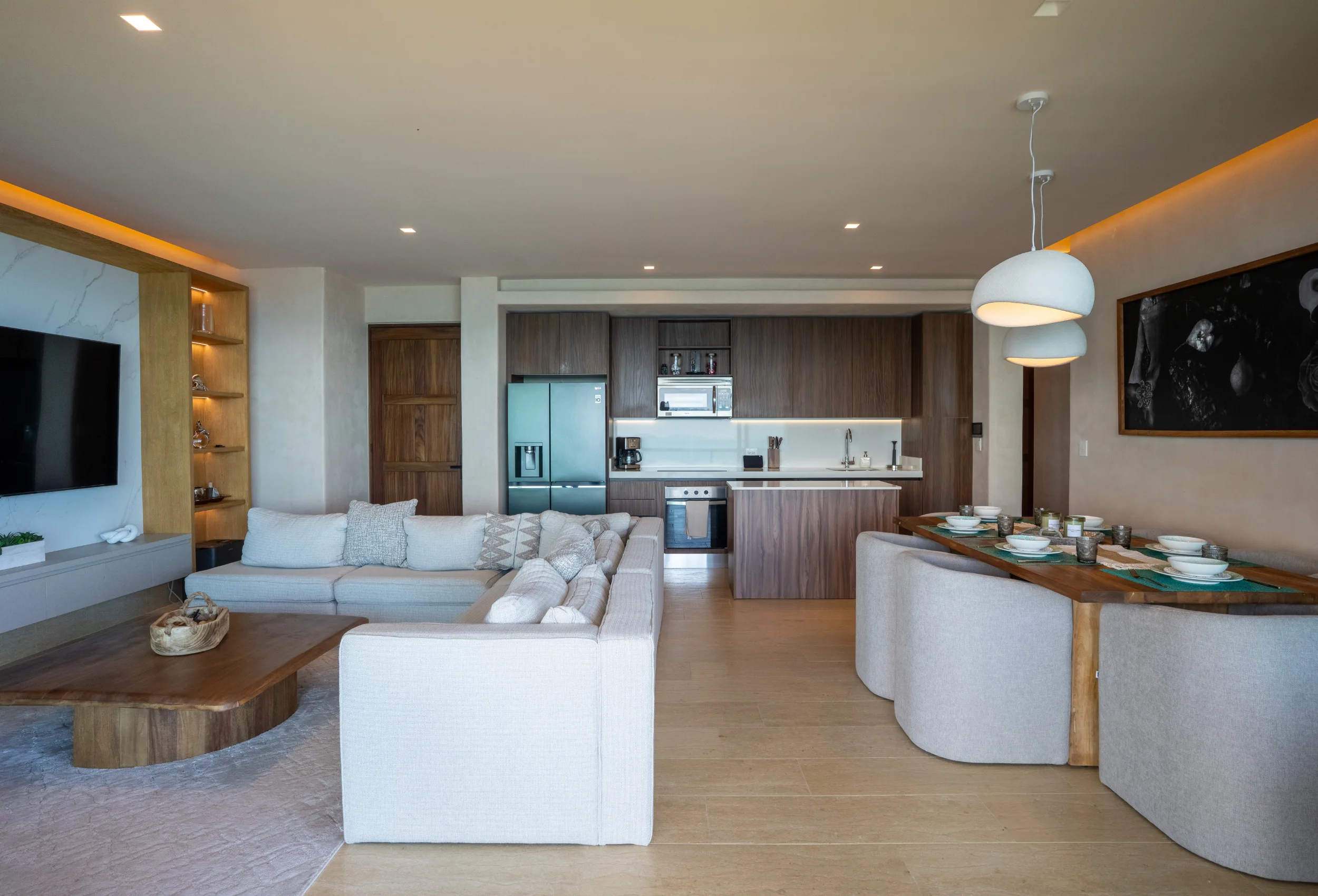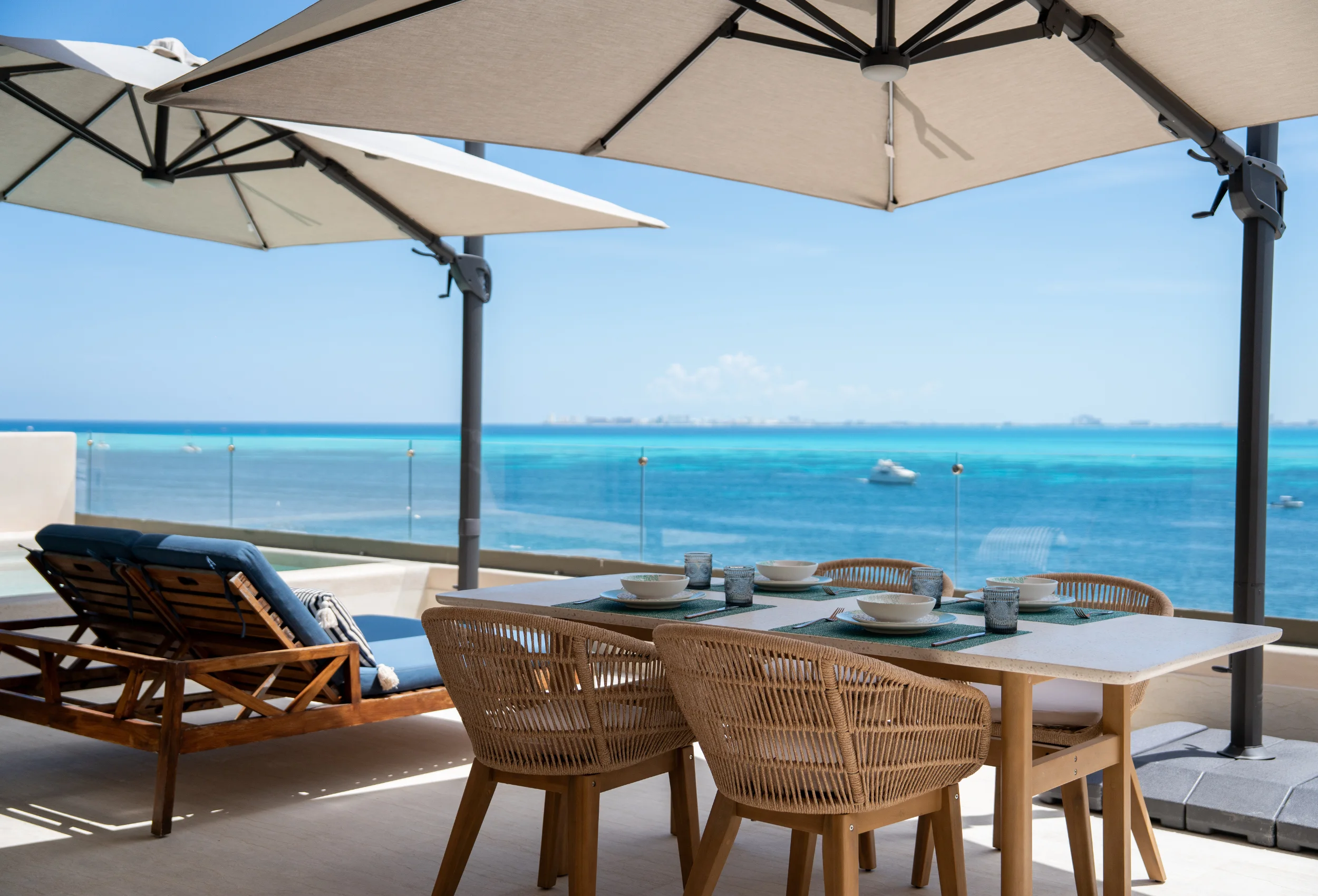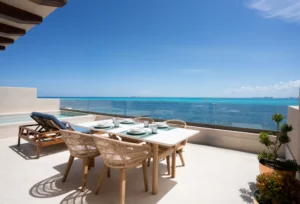 Este penthouse de lujo frente al mar está compuesto de un apartamento de 4 recámaras y un increíble penthouse studio con terraza, alberca privada, comedor al aire libre, dormitorio king size y cocina integrada, todo con vistas panorámicas al mar del caribe.