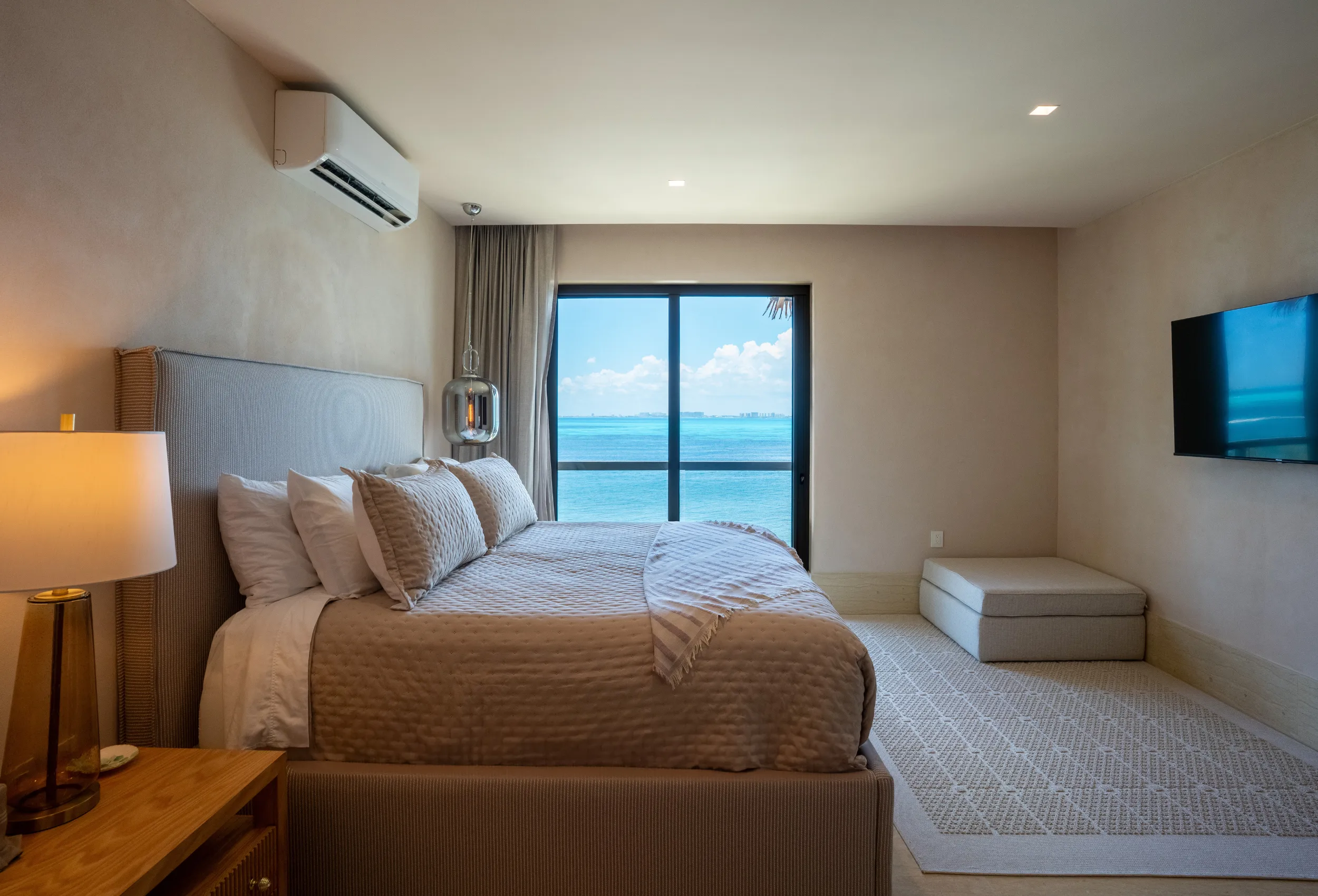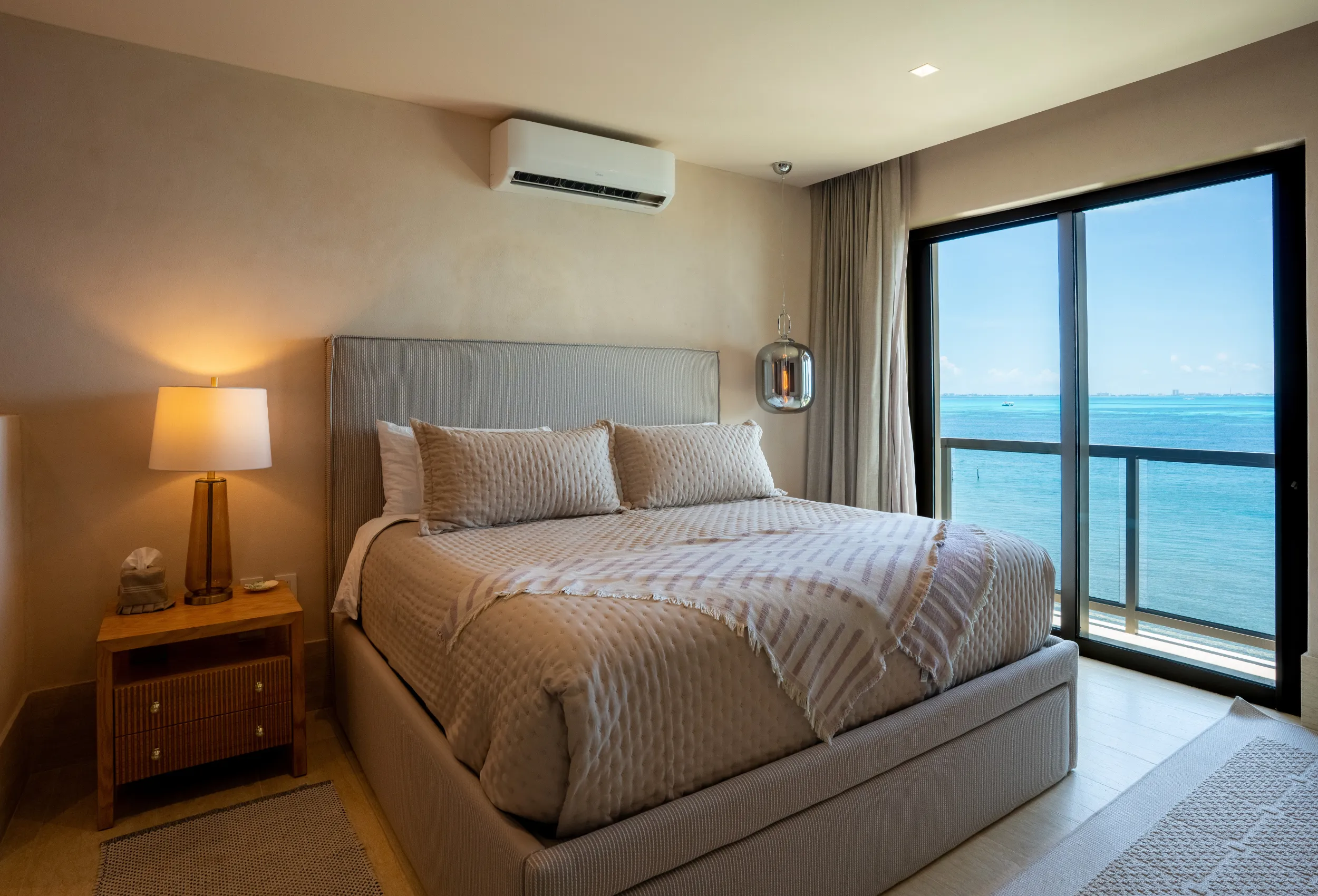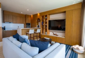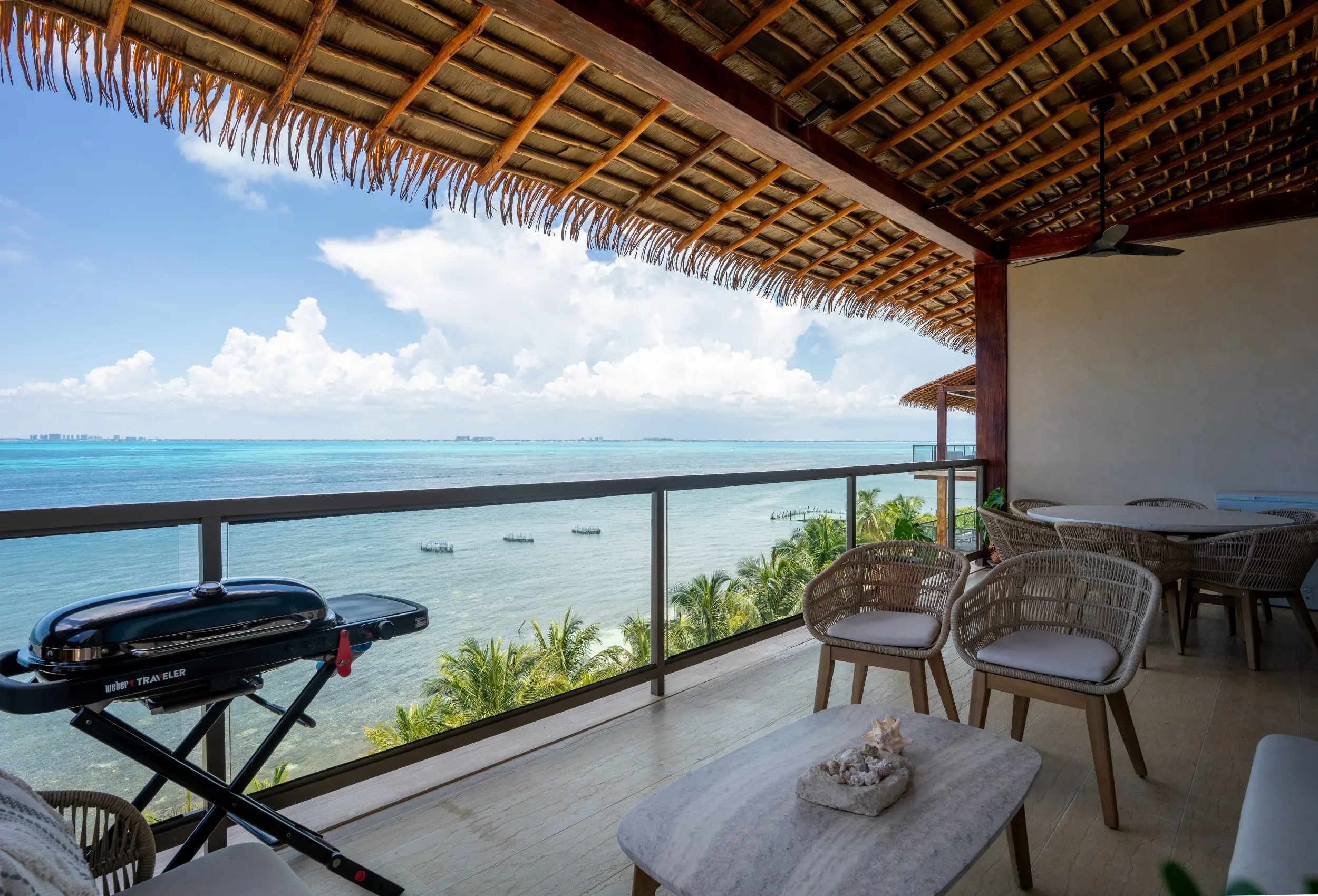Está ubicado en un exclusivo complejo residencial en Isla Mujeres con más de 70 metros lineales de frente de playa, impresionantes áreas comunes como una alberca infinita climatizada y una increíble terraza con área lounge, bar de cocktails y más.