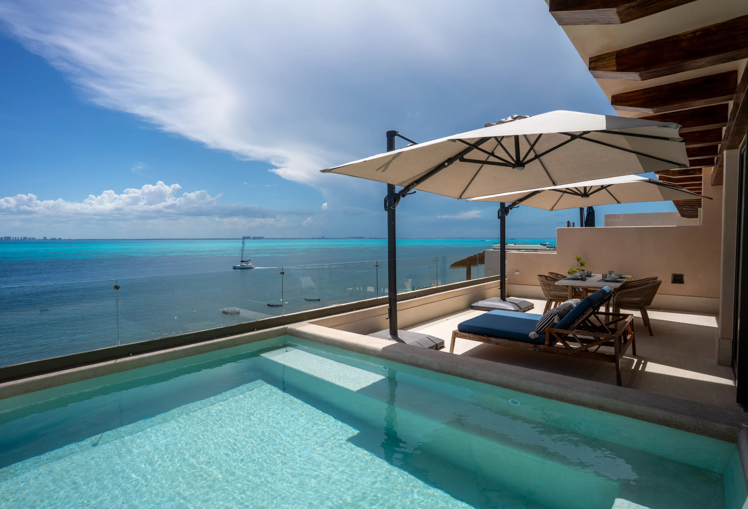 • Acceso directo a terraza privada con alberca y camastros